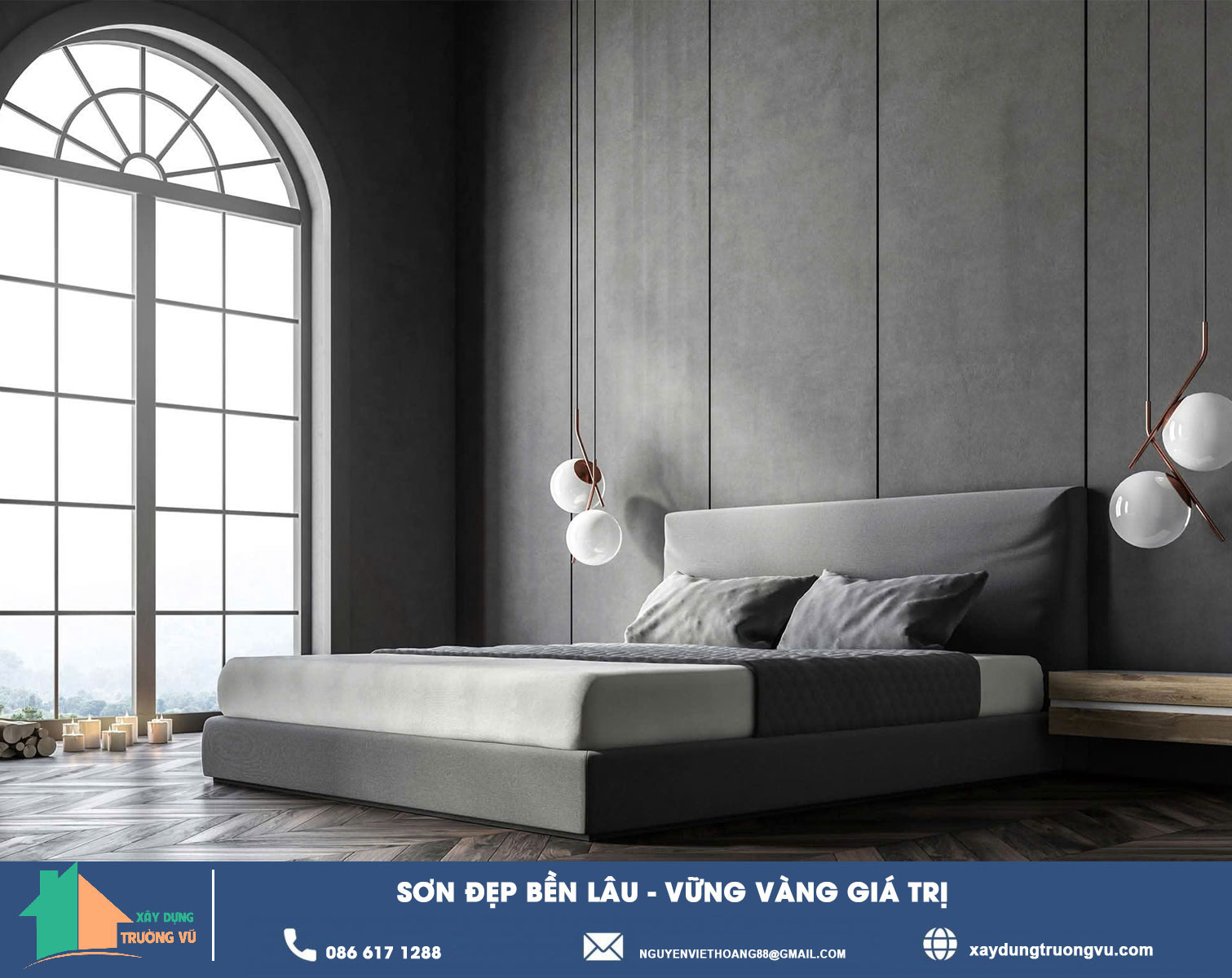 Với những ai yêu thích vẻ đẹp gần gũi, mộc mạc nhưng vẫn có nét ấn tượng thì sơn giả bê tông là sự lựa chọn lý tưởng. Đây là loại sơn tạo ra các hoa văn loang lổ lên bề mặt tường với màu xám nhẹ giống như bê tông. Dòng sơn này sở hữu các hoa văn và màu sắc vô cùng phong phú, chúng giúp mảng tường trở nên sống động, giàu cảm xúc hơn.