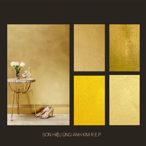 Sơn hiệu ứng ánh kim mang đến vẻ đẹp lộng lẫy, sa hoa bật nhất cho các mảng tường nội thất. Loại sơn này có thể sử dụng cho tường nhà lẫn trần, tạo nên một không gian đầy sức hút của sự đẳng cấp, quý tộc.